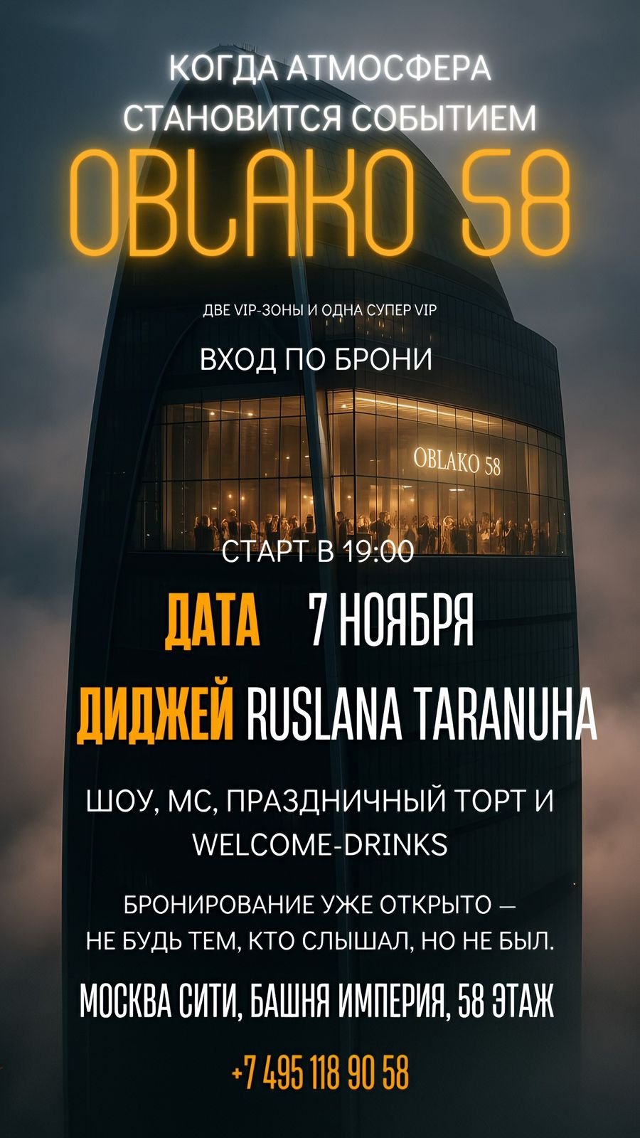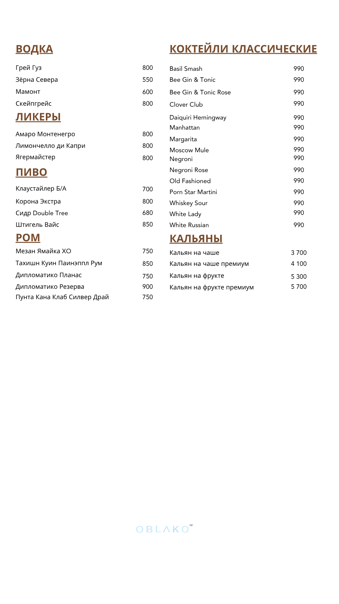 OBLAKO 58 — Атмосферный, панорамный ресторан и лаундж-бар, созданный для живого общения и комфортного отдыха. Акцент на авторской кухне. Мы делаем акцент на безупречное качество, первоклассный сервис и индивидуальный подход к каждому гостю.